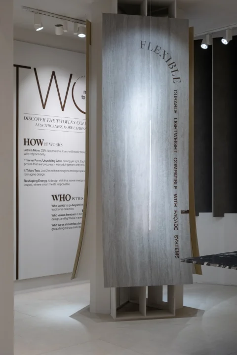 Ayrıca, sadece 3 mm kalınlığında olan ve cephe sistemlerinde ilk kez sergilenen esnek porselen plakalar, hafif yapısı ve yenilikçi kullanım avantajlarıyla mimarlara yeni olanaklar sundu.